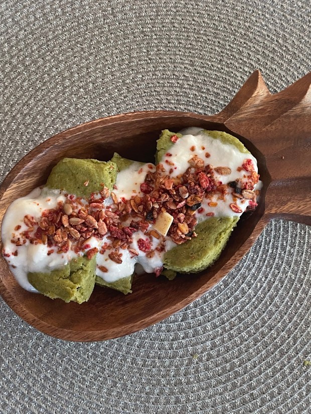 for a matcha sauce, blend 100g yogurt, 5g matcha powder, and 1g psyllium (if you have).